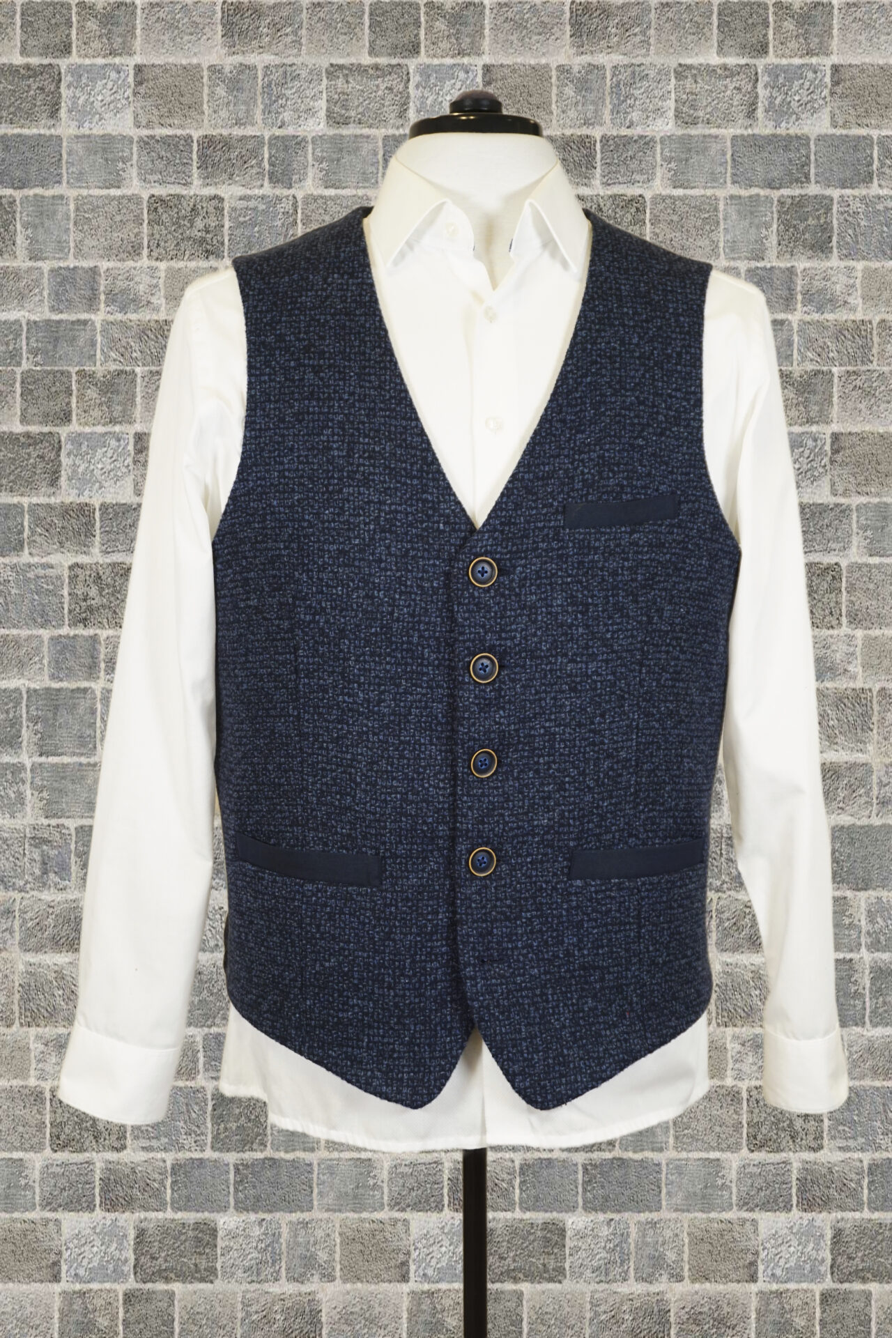Einreiher Herrenweste, klassischer Schnitt, marine gemustert,