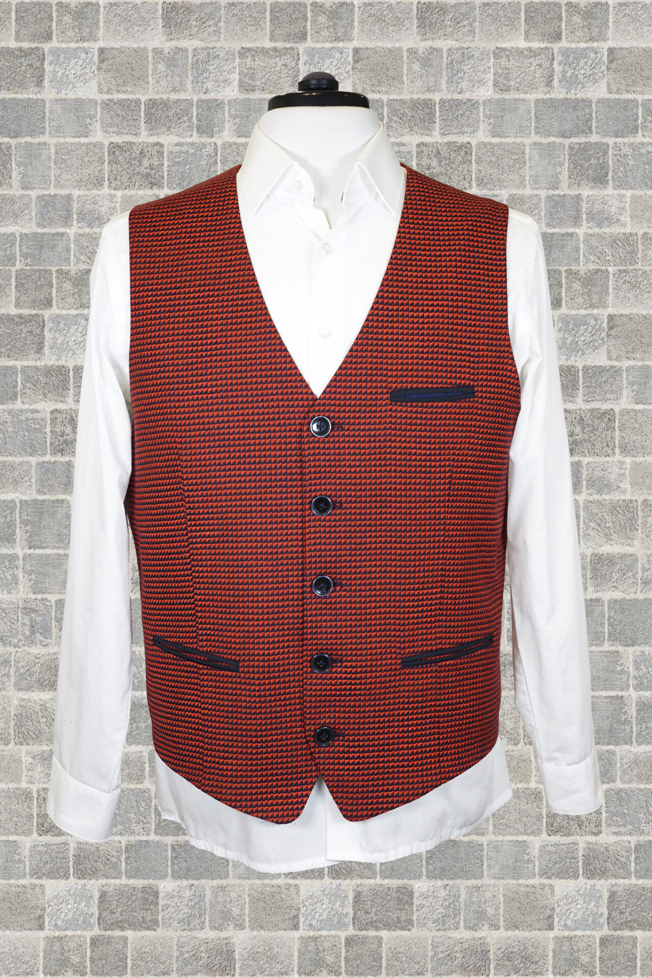Herrenweste Lennart – rot/blau mini karo